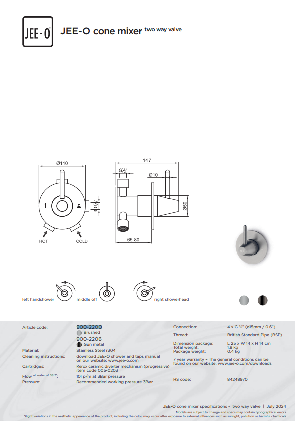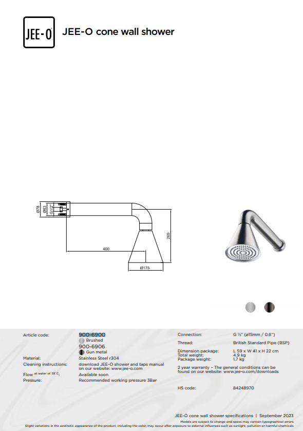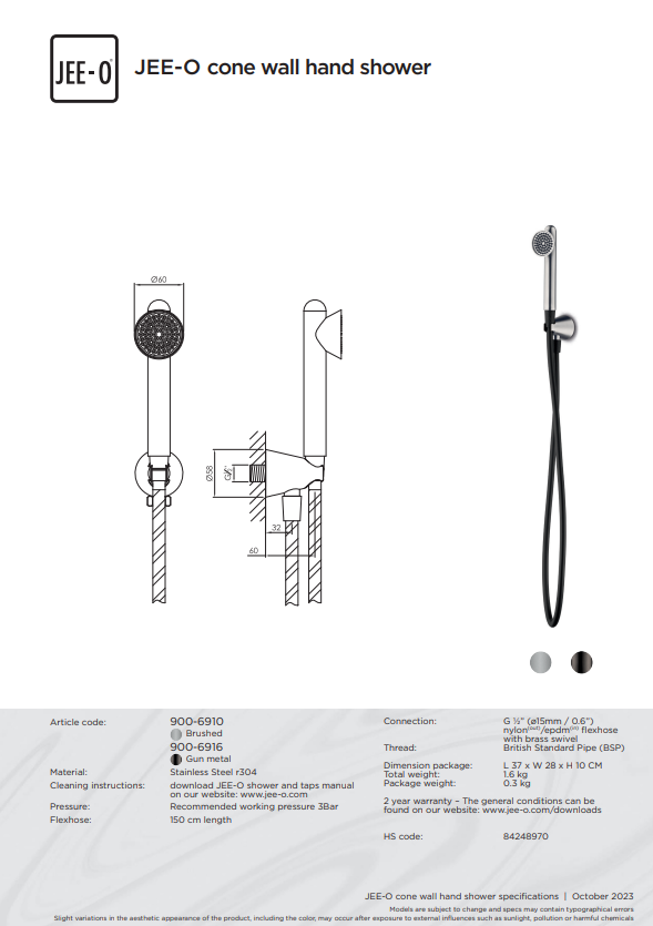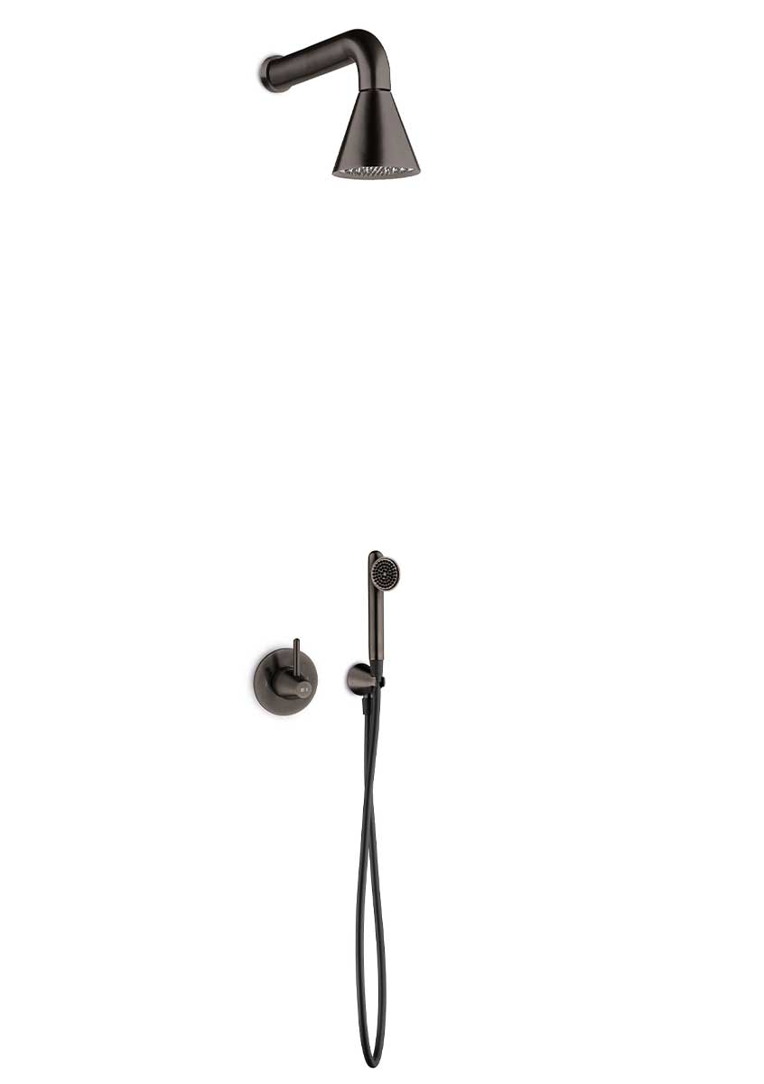 De JEE-O Cone serie combineert strak design met functioneel gebruiksgemak en biedt een stijlvolle toevoeging aan elke badkamer. Eén van de producten in deze collectie is de JEE-O Cone douche combinatie 05. Deze set bestaat uit een wanddouche, een tweeweg mengkraan en een wand handdouche, waardoor u kunt genieten van een complete en comfortabele douche-ervaring. De combinatie is verkrijgbaar in de afwerkingen Geborsteld RVS en Gun Metal, zodat u de stijl kunt kiezen die het beste bij uw badkamer past.