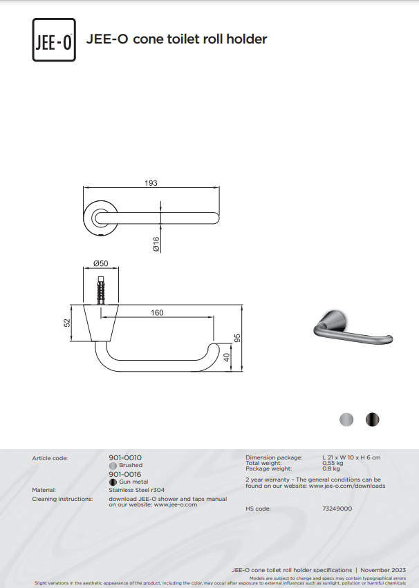 De Cone toiletrolhouder JEE-O is verkrijgbaar in de kleur Geborsteld RVS en Gun metal.