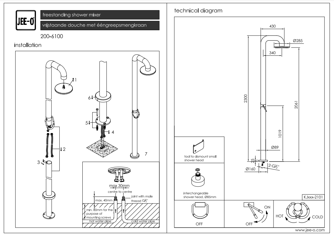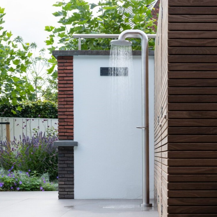 JEE-O Fatline douche 01, vrijstaande douche rvs met ééngreepsmengkraan en verwisselbare douchekop verkrijgbaar bij Stone Company. Hier vindt u artikelen van het hoogwaardige merk JEE-O.