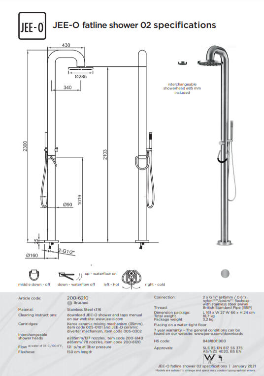 JEE-O Fatline douche 02, vrijstaande douche rvs met ééngreepsmengkraan en handdouche verkrijgbaar bij