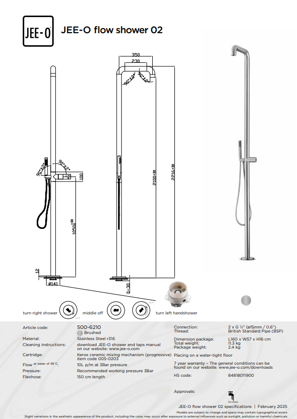 Flow vrijstaande douche JEE-O, vrijstaande douche met ééngreepsmengkraan en handdouche. Nu verkrijgbaar bij Stone Company. Hier vindt u artikelen van het hoogwaardige merk JEE-O.