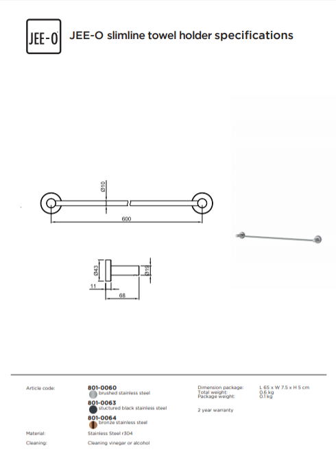 Slimline handdoekhouder JEE-O, verkrijgbaar bij