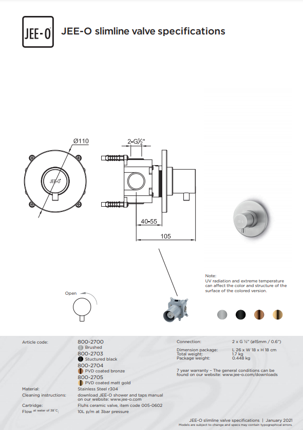 De Slimline Stopkraan, JEE-O zijn verkrijgbaar in de kleuren: