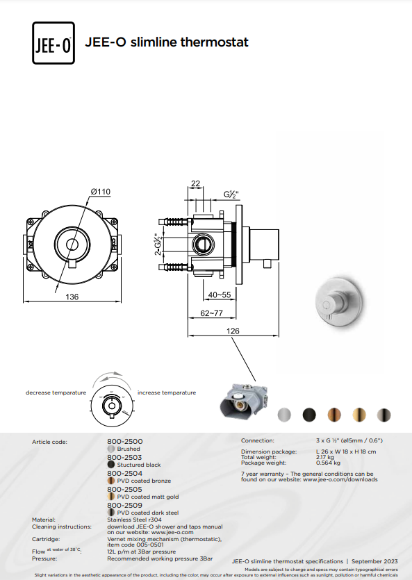 JEE-O Slimline thermostaatkraan, Deze wand inbouw thermostaat, zijn verkrijgbaar bij
