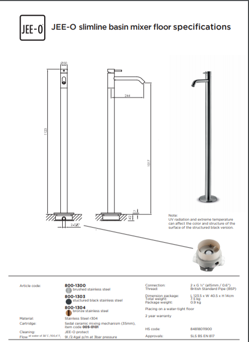 De slimline vrijstaande wastafelkraan JEE-O is verkrijgbaar in de kleuren: