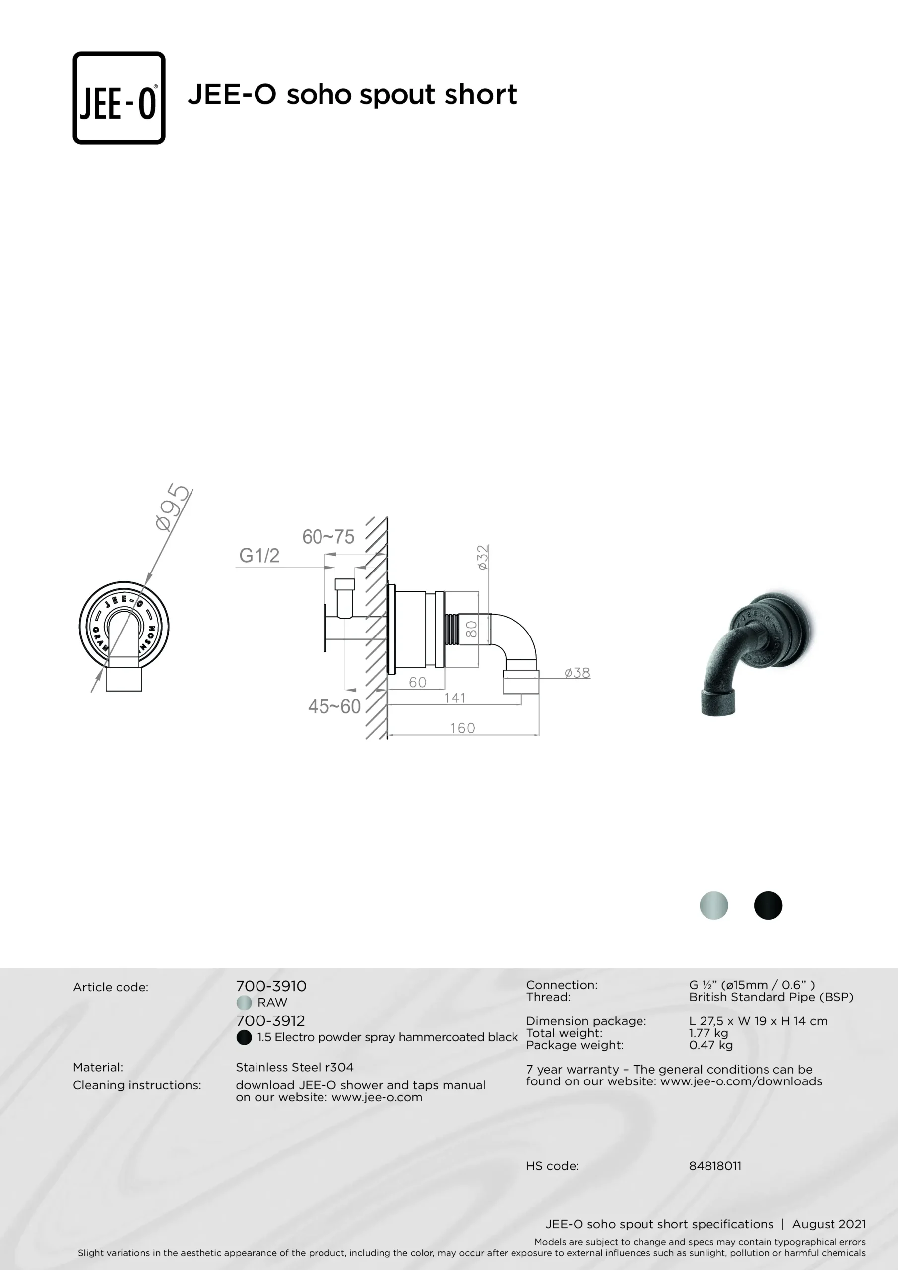 Soho wand uitloop kort JEE-O, Uitloop voor uw wastafel of bad. De uitloop is verkrijgbaar in verschillende kleuren en kan u goed combineren met de andere producten. De uitloop is 16 cm lang. Nu verkrijgbaar bij