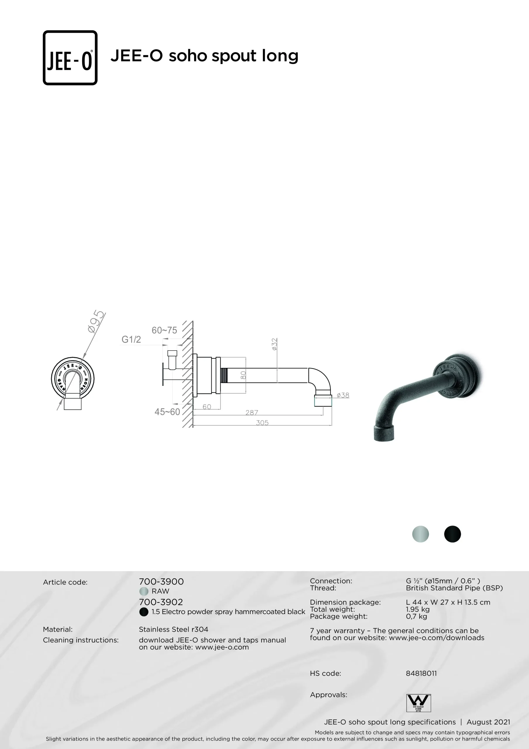Soho wand uitloop lang JEE-O, deze wand uitloop is te gebruiken bij uw mooie bad of wastafel. U kunt het perfect combineren met de andere producten van JEE-O. De uitloop is 30,6 cm. Nu verkrijgbaar bij