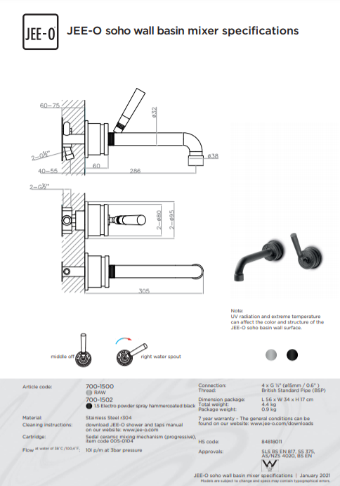 De Soho wand wastafelkraan JEE-O is verkrijgbaar in de kleuren: