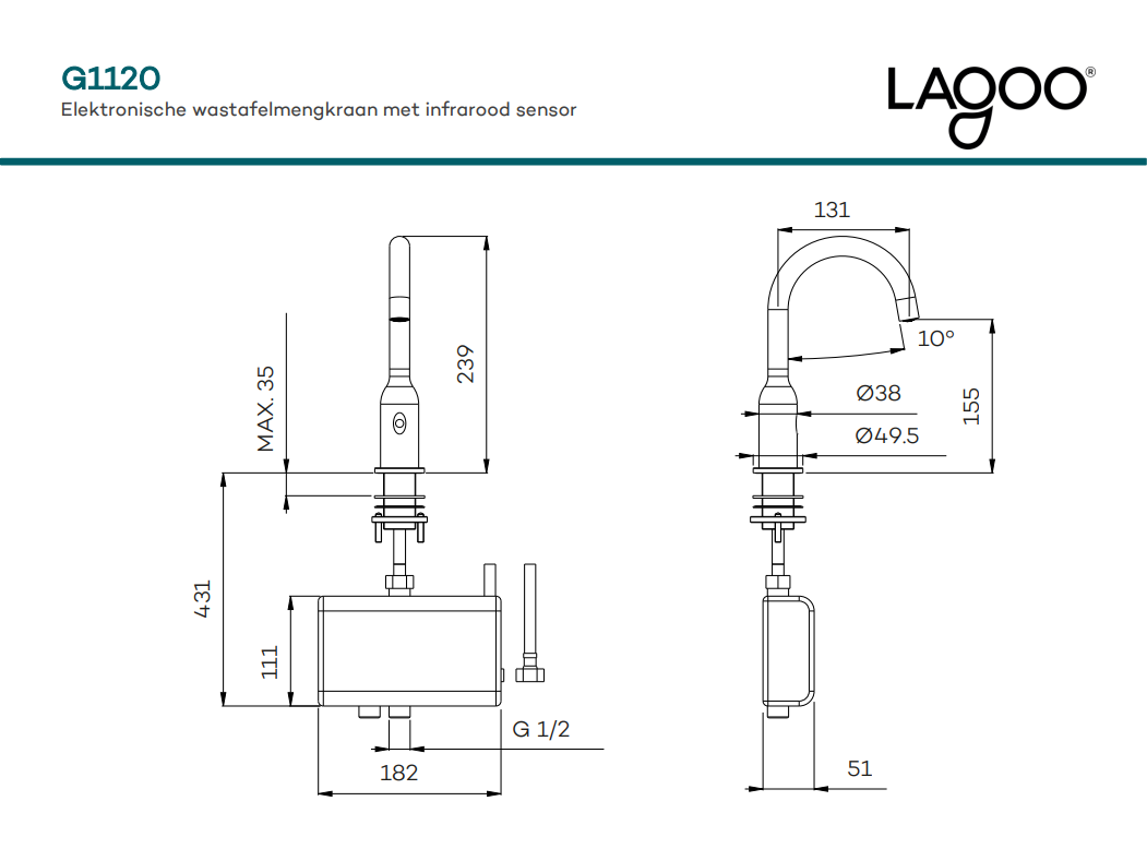 • Type: elektronische wastafelmengkraan met infrarood sensor