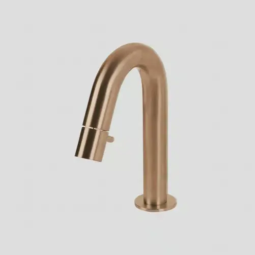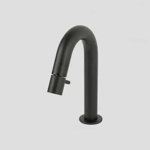 designkraan die perfect past bij iedere fontein of wastafel in het toilet. Dankzij het verfijnde ontwerp en de hoogwaardige afwerking combineert deze kraan elegantie met gebruiksgemak. De gebogen uitloop zorgt voor een vloeiende waterstroom en geeft het geheel een tijdloze uitstraling die past binnen zowel moderne als klassieke interieurs.