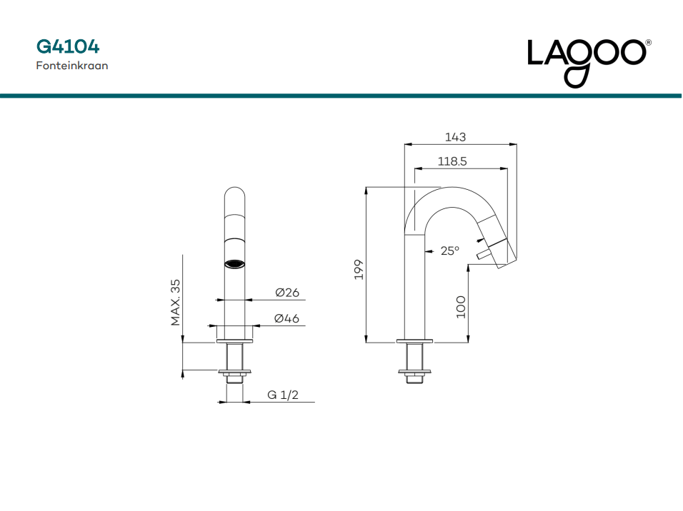 Garda fonteinkraan met gebogen uitloop Lagoo. Artikelcode