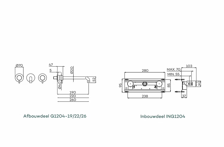 - inbouw wastafelmengkranen voor montage op wand