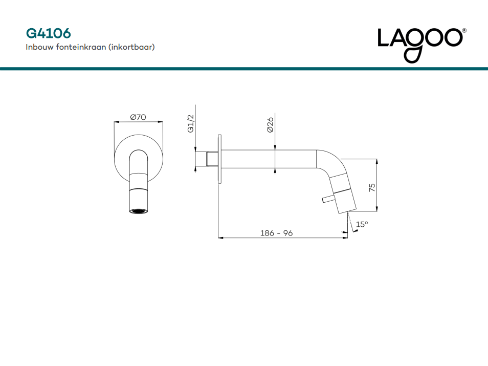 - Model: Garda Inbouw fonteinkraan (inkortbaar)