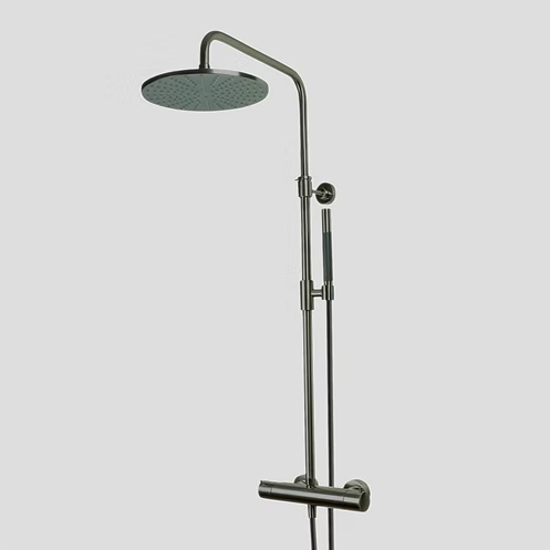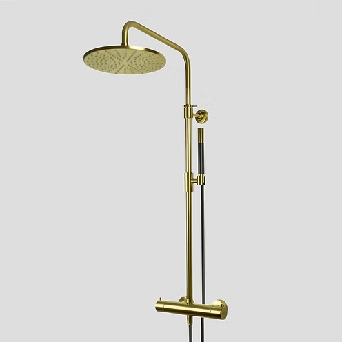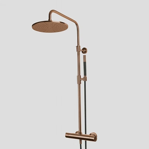• Complete thermostatische doucheset bestaat uit de volgende onderdelen: Thermostatische douchekraan met tweeweg omstel, ronde hoofddouche Ø250 mm, glijstang, handdoucheset met flexibele doucheslang, handdouche (staaf) en verstelbare handdouchehouder