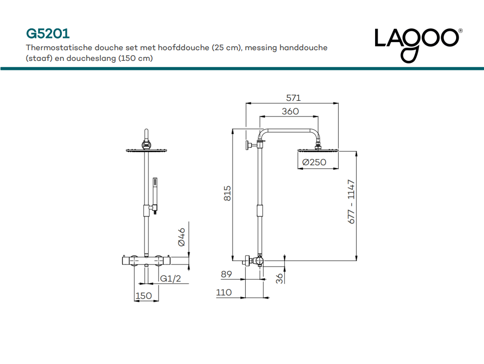 Met de Lagoo Garda Thermostatische opbouw doucheset kiest u voor comfort, betrouwbaarheid met een keramisch binnenwerk en een strak vormgegeven doucheset. de Lagoo Garda Thermostatische doucheset betekent kiezen voor nauwkeurige temperatuurregeling. De douchekranen zijn makkelijk te gebruiken en schakelen direct tussen hoofddouche en handdouche. De kraan met 150 mm hartafstand past precies op standaardleidingen. U kunt de set eenvoudig op muren van verschillende diktes installeren. De set is verkrijgbaar in stijlvolle afwerkingen zoals chroom, mat zwart en geborsteld messing, passend in elke badkamer. Met een wandarm van 350 mm en een hartafstand van 150 mm is de installatie eenvoudig.