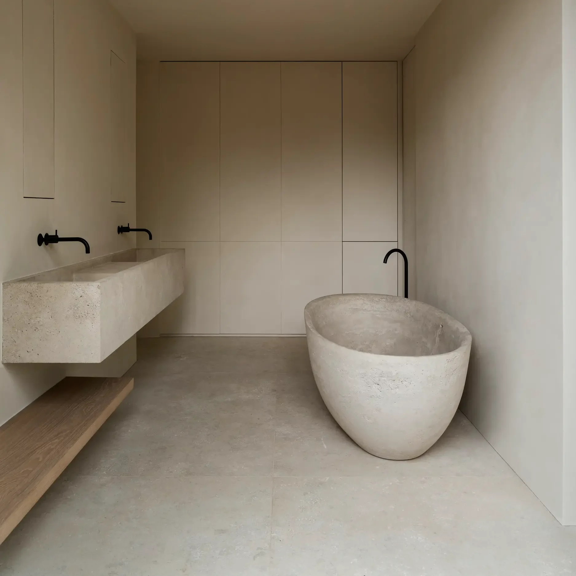 De Loho Freestanding Stone Bathtub is een vrijstaand natuurstenen bad, volledig met de hand vervaardigd uit massief steen. Dankzij de nano vlekstop-coating is het oppervlak beschermd tegen vocht en vlekken, waardoor het bad duurzaam en eenvoudig te onderhouden is. Elk bad is uniek in textuur en kleur, met een natuurlijke uitstraling die een luxe en tijdloos karakter geeft aan de badkamer.