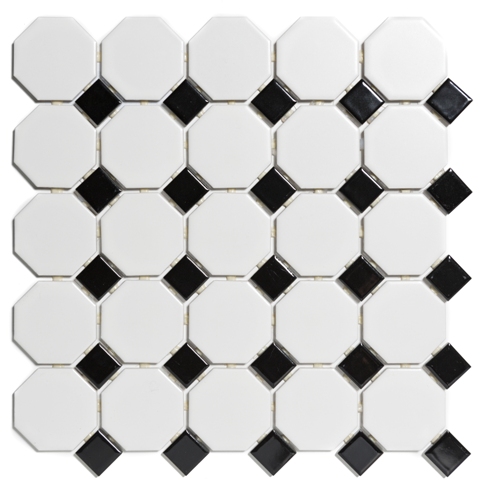 Home - Wandafwerking - Mozaiek - Teak en Living Mat Wit en Zwart Glans 295x295mm mozaïek per m2