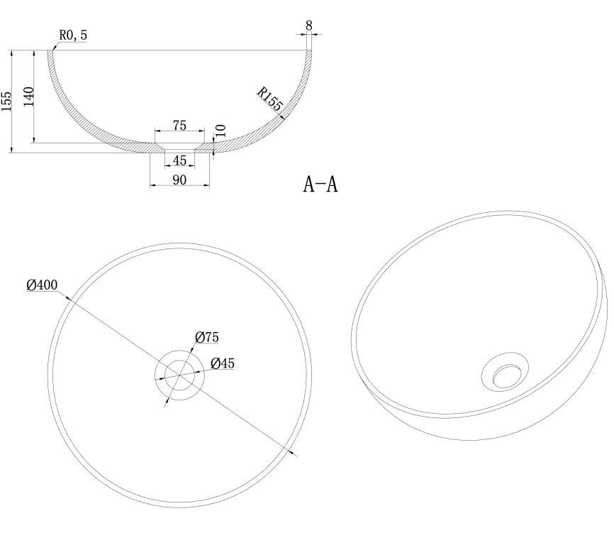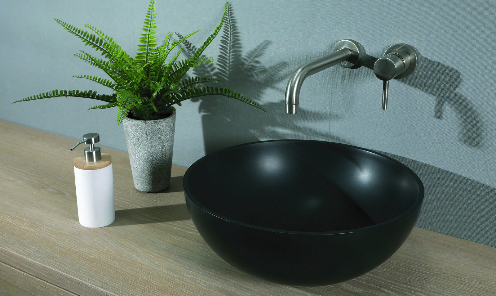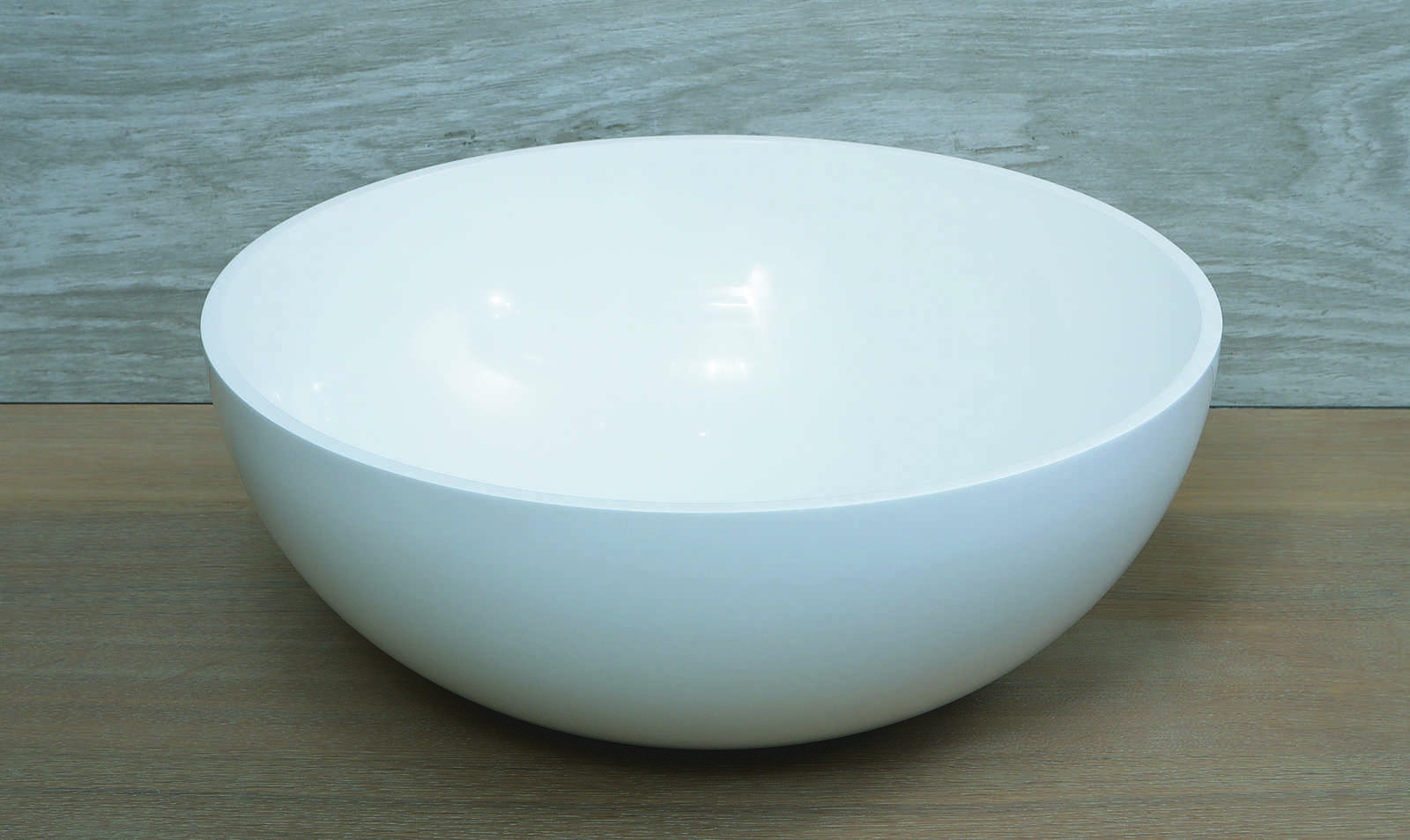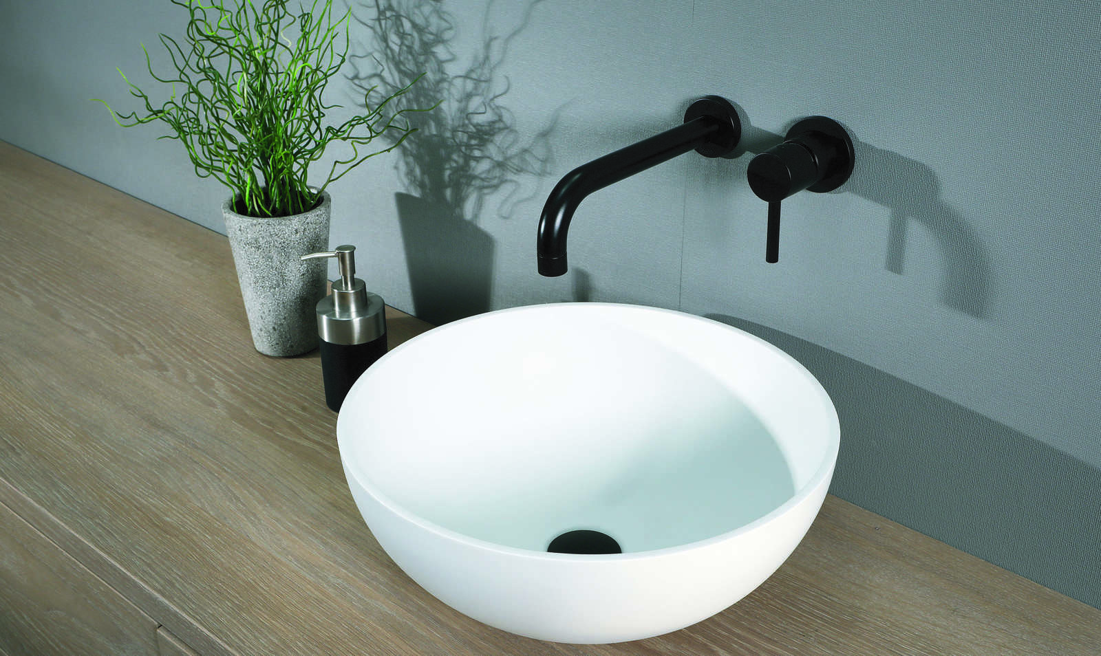 Opzetwastafel LUVA1320 wit glans, LUVA1320M Wit mat en de LUVA1320A Antraciet, Luca Sanitair opzetwastafel gemaakt van mineral stone. Vorm rond 40x40x15h verkrijgbaar bij