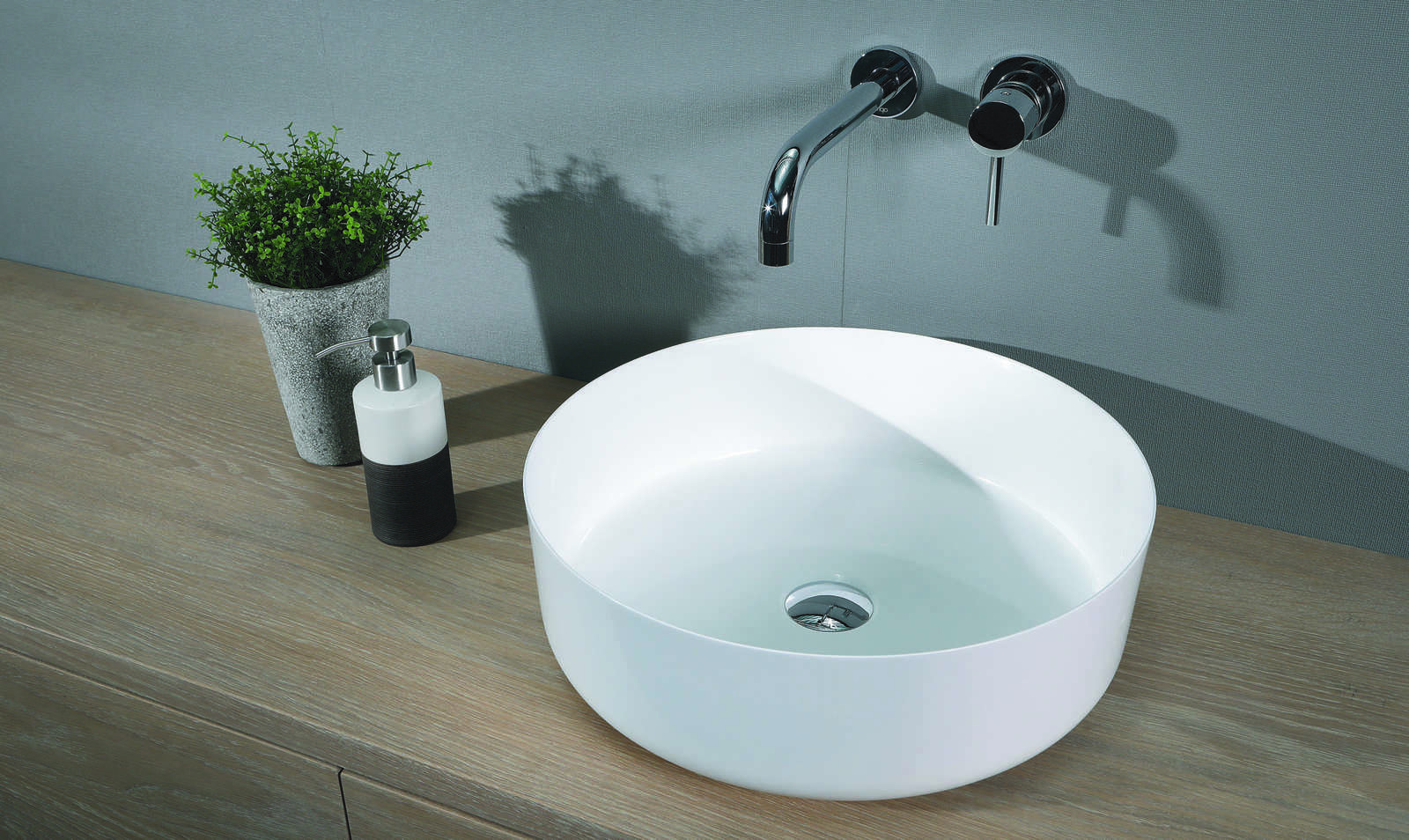 Opzetwastafel LUVA1342 Wit glans en de LUVA1342M Wit mat, Luca Sanitair opzetwastafel gemaakt van mineral stone. Vorm rond 42x42x13,5h verkrijgbaar bij