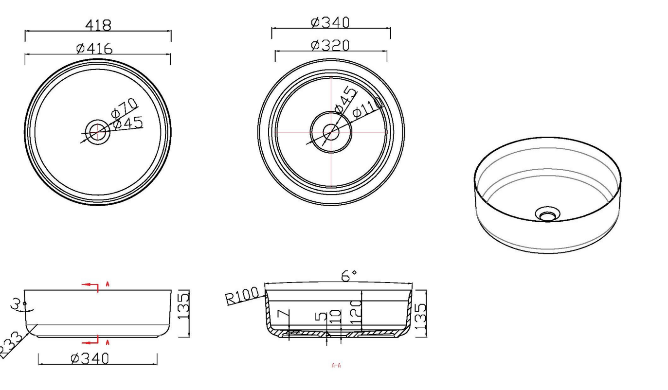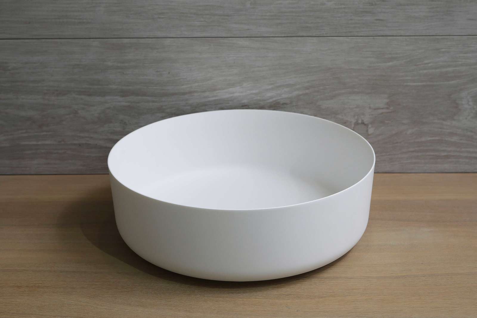 Opzetwastafel LUVA1342M mat wit, Luca Sanitair opzetwastafel gemaakt van solid surface. Vorm rond 42x42x13,5h verkrijgbaar bij Stone Company.