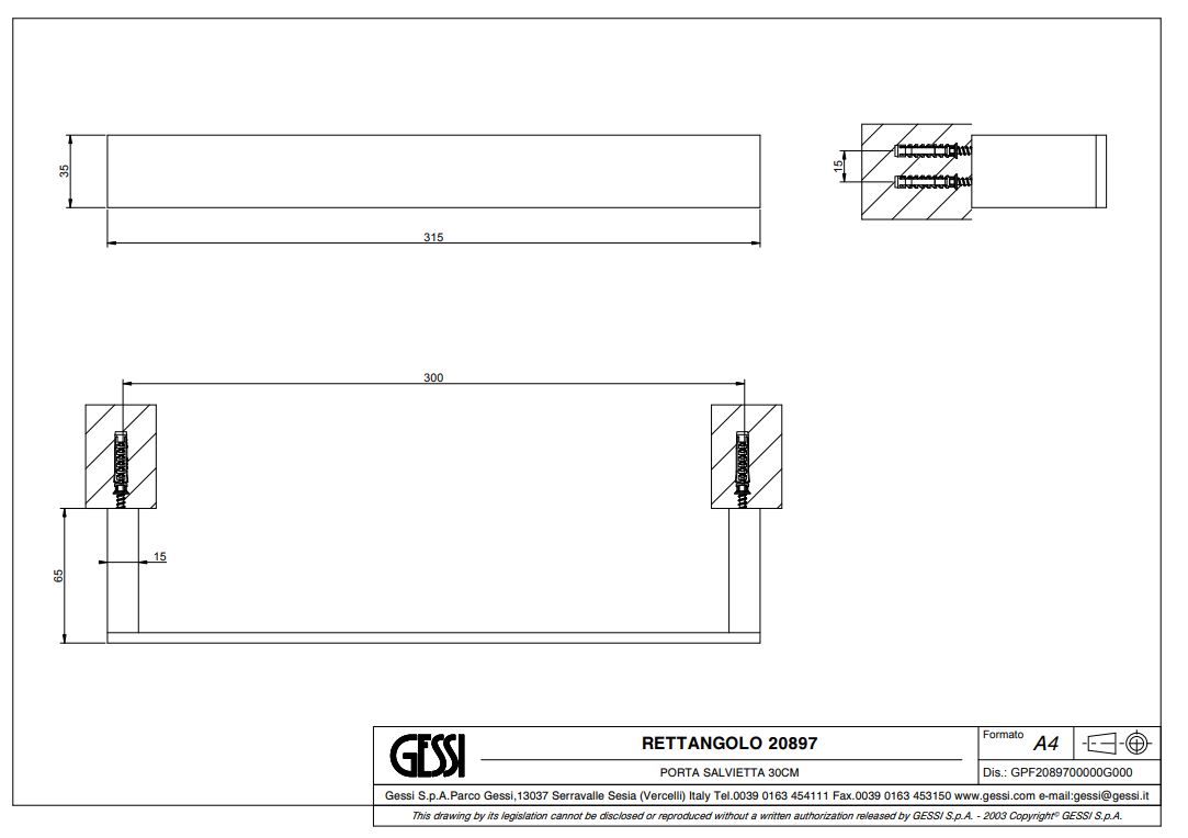 Home - Accessoires - Handdoek accessoires - GESSI Rettangolo wand-handdoekhouder 30cm