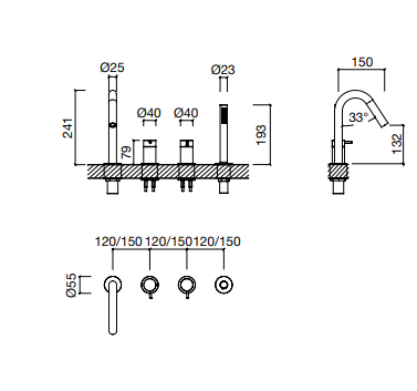 Afwerkingen REXA 4-gats badrandcombinatie: