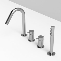 REXA Design presenteert de vier gaten badrandcombinatie, een luxe kraangroep die perfect past bij uw Rotonda Maxi bad. Deze set bestaat uit een hoge uitloop, twee bedieningsknoppen, een 2-wegs omsteller en een handdouche met houder. Gemaakt van duurzaam roestvrij staal met een satin finish, voegt deze kraan direct een moderne en stijlvolle touch toe aan uw badrand. U monteert de set eenvoudig in vier gaten met standaardafstand. Zo creëert u een functioneel én elegant geheel voor badvulling en zorgeloze bediening.