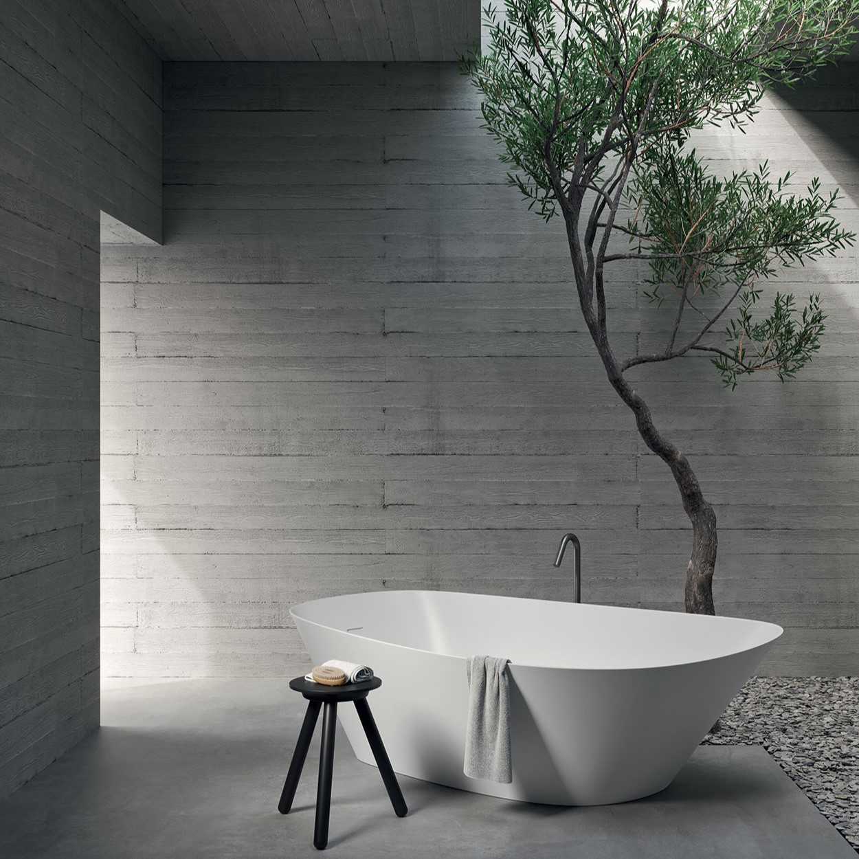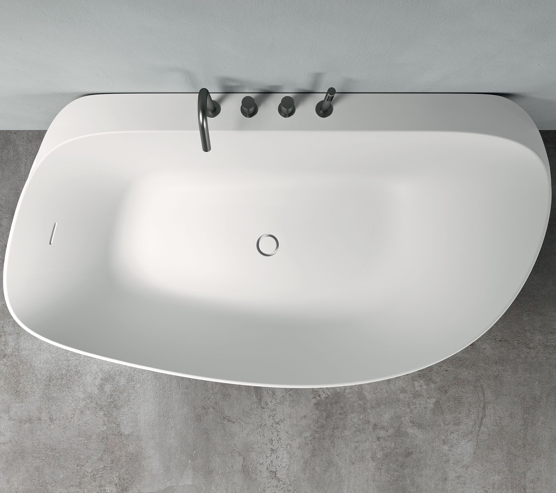 Fonte is ontworpen met asymmetrie als functioneel kenmerk. De voorzijde is lager voor een comfortabele instap en de achterzijde is breder om de schouderpartij prettig te ondersteunen. Naast de vrijstaande versie is er een model met een shelf waarop u kranen plaatst voor een strakke afwerking. Dankzij het het vrijstaand model bepaalt u zelf waar het vrijstaande bad in uw ruimte komt te staan.