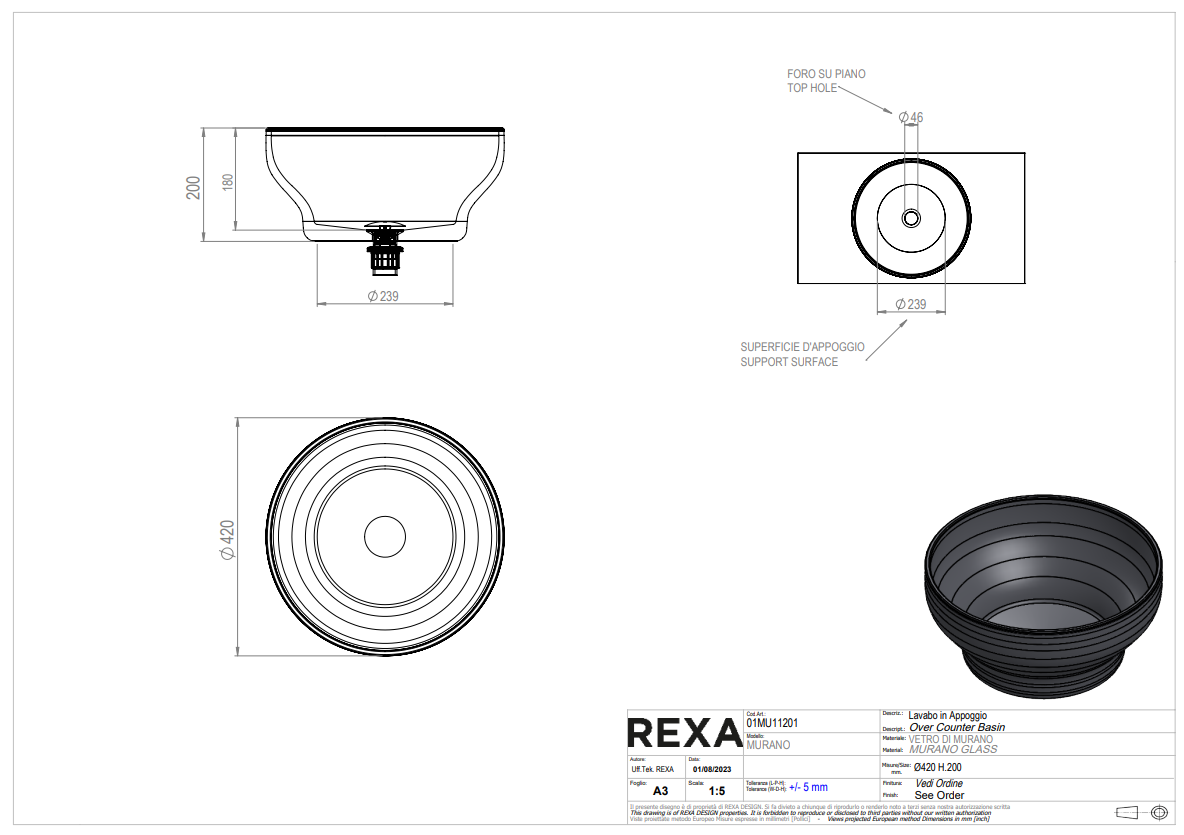 - Productnaam: REXA Murano waskom (artikelcode 01MU11201)
