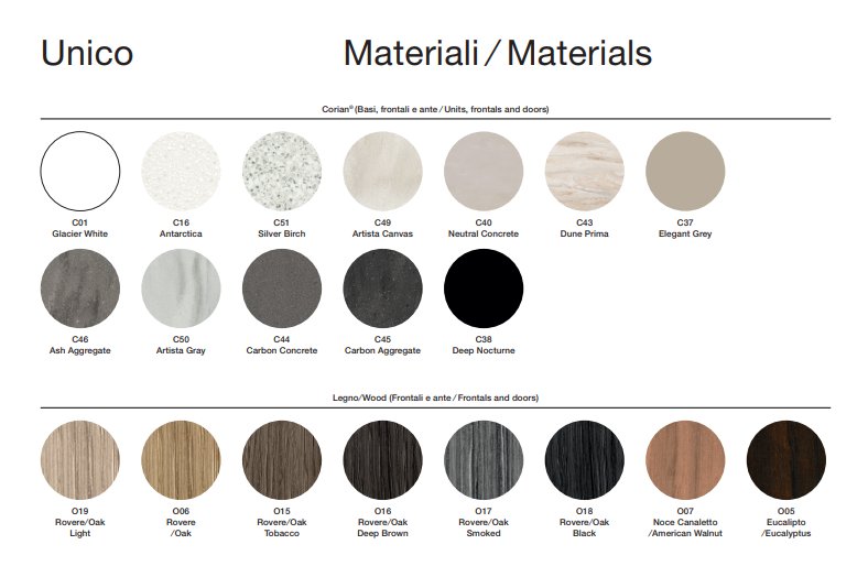 - Materiaal: wit of gekleurd Corian® met handmatige gepolijst