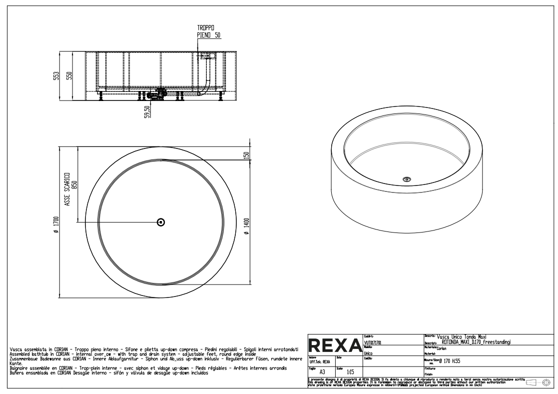 Afmetingen Rotonda Maxi bad Ø1700 mm: