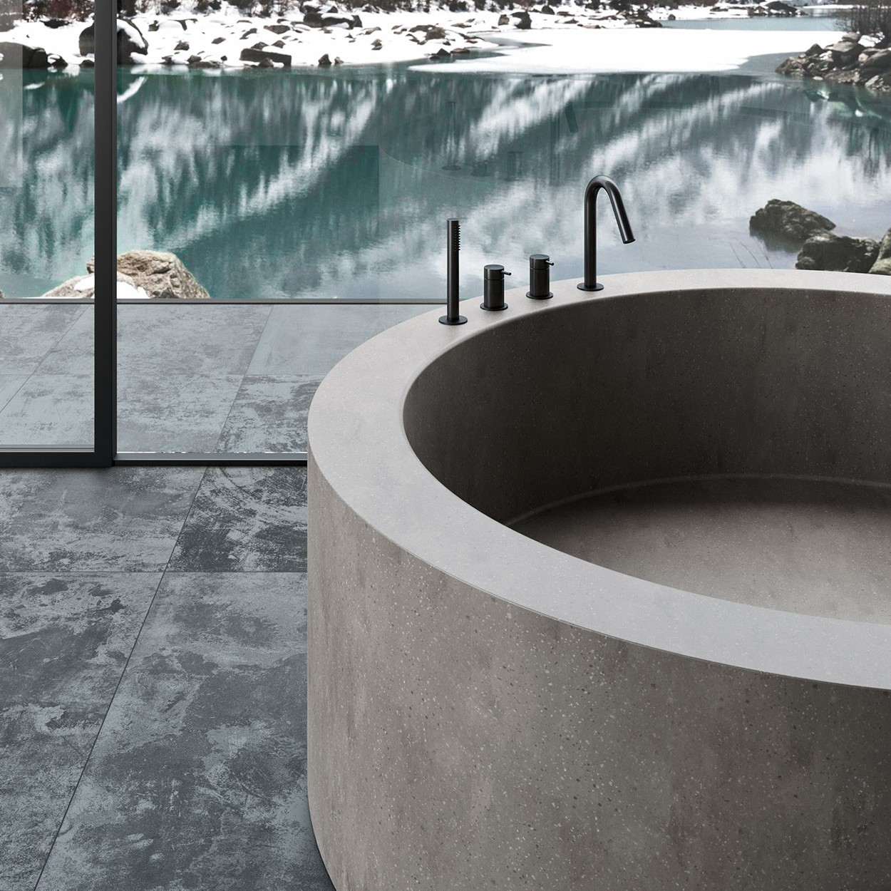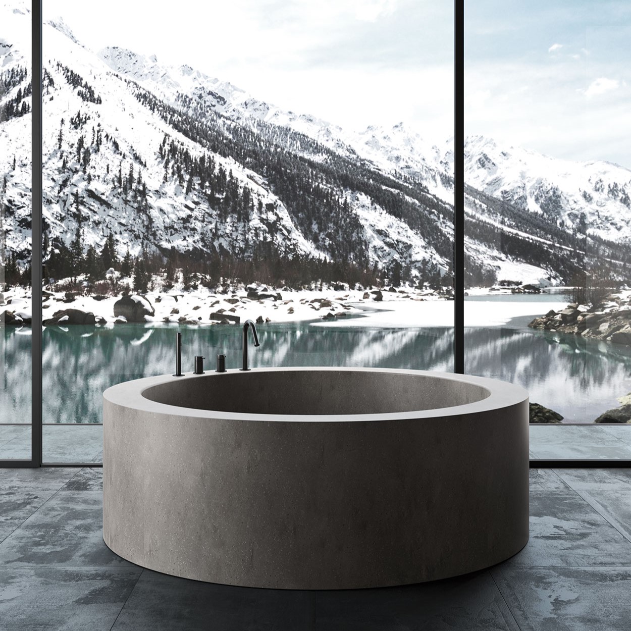 Het Rotonda Maxi bad valt direct op door zijn perfecte cirkelvorm. Het hoogwaardige Corian® is met de hand bewerkt, waardoor het bad prettig aanvoelt en er strak uitziet. Dankzij het meegeleverde metalen frame met verstelbare poten bepaalt u zelf waar het vrijstaande bad in uw ruimte komt te staan. De Click Clack-afvoer zit vlak in het bad en sluit naadloos aan.