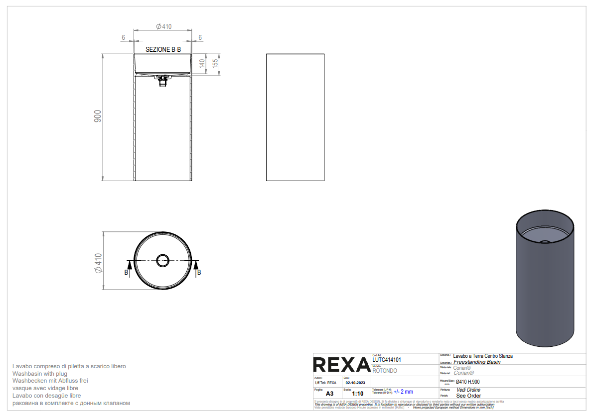 Afwerkingen REXA Unico Rotondo wastafel: