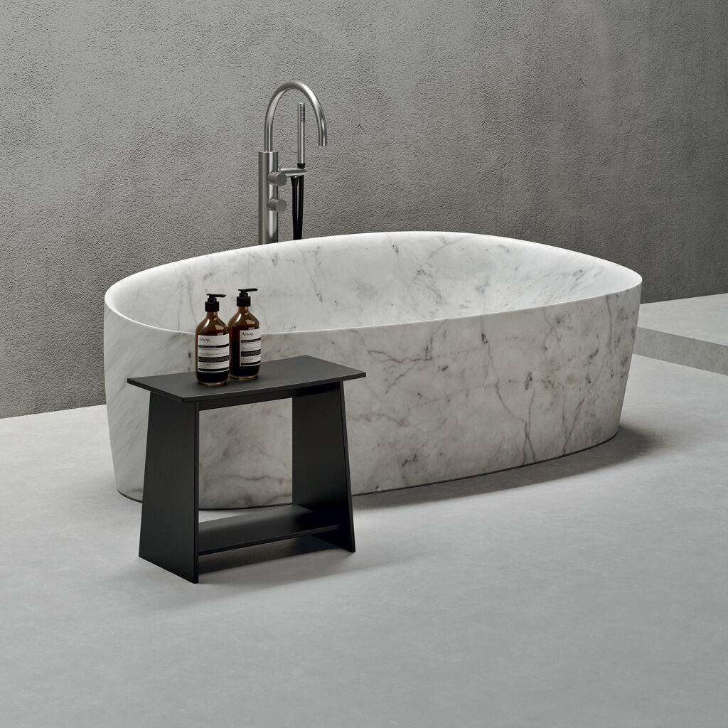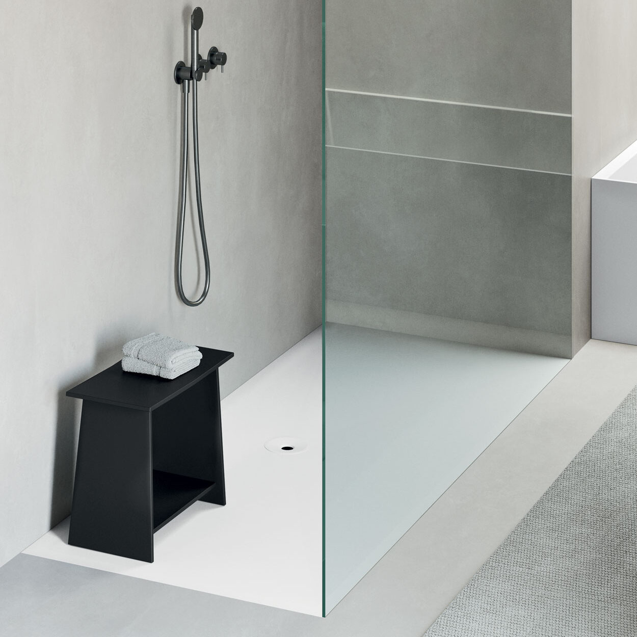U kiest voor de Unico Stool omdat hij meerdere rollen vervult: zitplaats, opstapje en bijzettafel. Corian® biedt langdurige hygiëne dankzij het gladde, naadloze oppervlak dat vuil en kalk weinig kans geeft. De kruk is licht van gewicht, maar toch sterk en stabiel. Dankzij de compacte afmetingen neemt hij weinig ruimte in en beweegt u hem eenvoudig mee. Het minimalistische design past bij elke badkamerstijl, van modern tot klassiek. Met de Unico Stool geniet u optimaal van comfort en flexibiliteit.