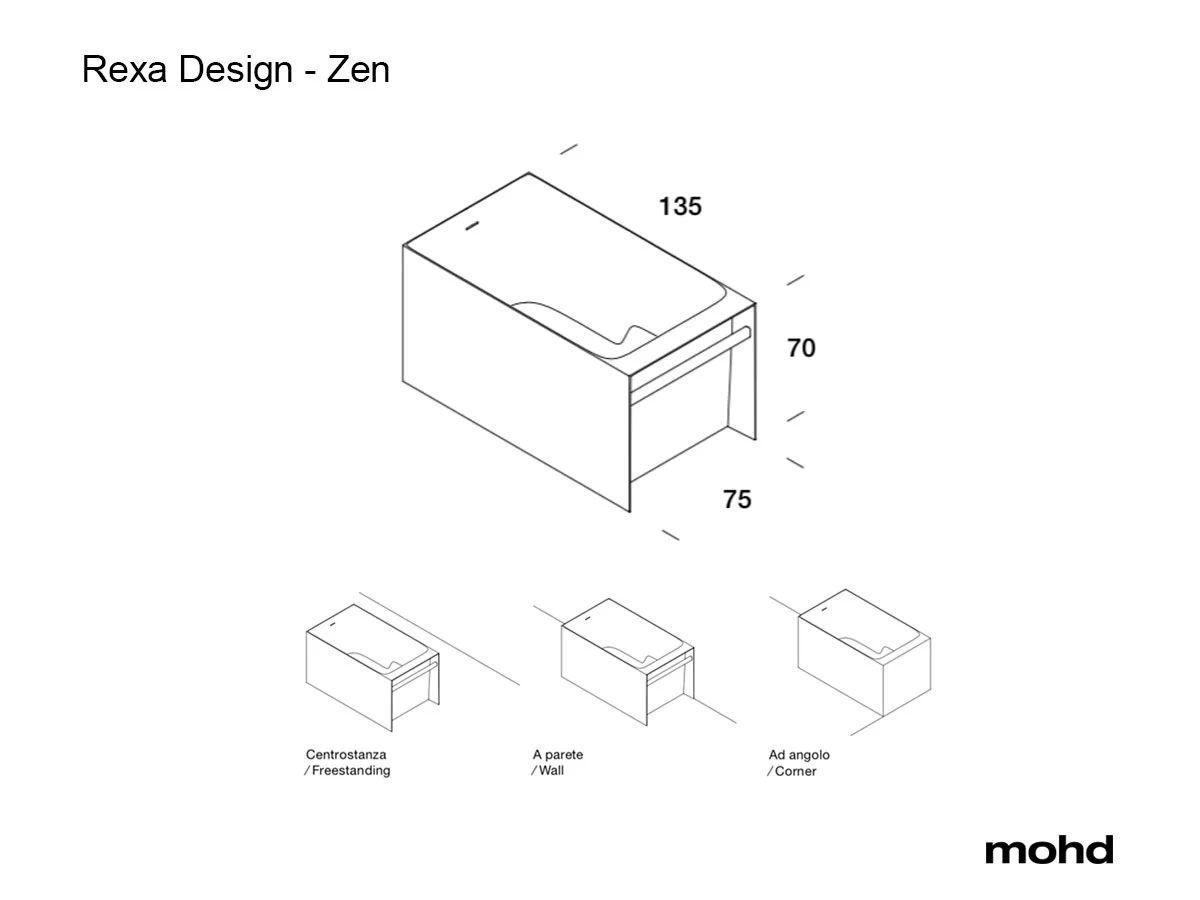 REXA Design haalt innovatie naar uw badkamer met het Zen vrijstaand bad. Dit bad combineert een strak, vriendelijk ontwerp met comfort. Met afmetingen van 135 × 75 × 70 cm biedt het voldoende ruimte om ontspannen te liggen. Het Zen bad is gemaakt van Corian®, met gladde, handgeslepen randen voor een zachte uitstraling. U plaatst het bad vrij in de ruimte, tegen een muur of in een hoek. Met de vrijstaande badmengkraan met handdouche en de handdoekhouder zorgt u voor extra ontspanning thuis.