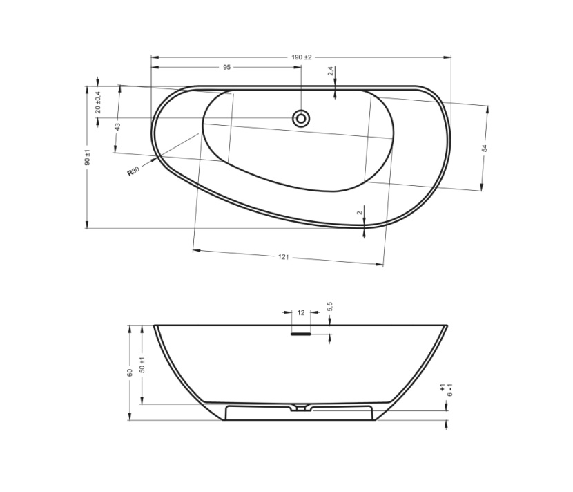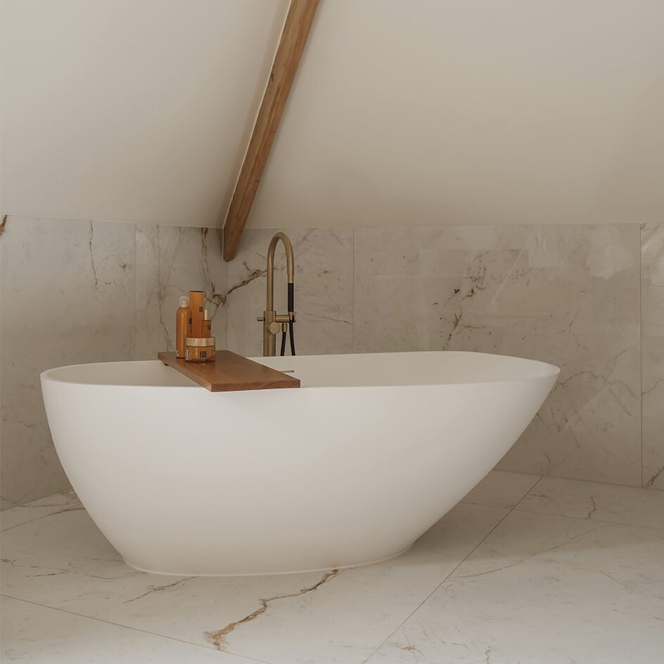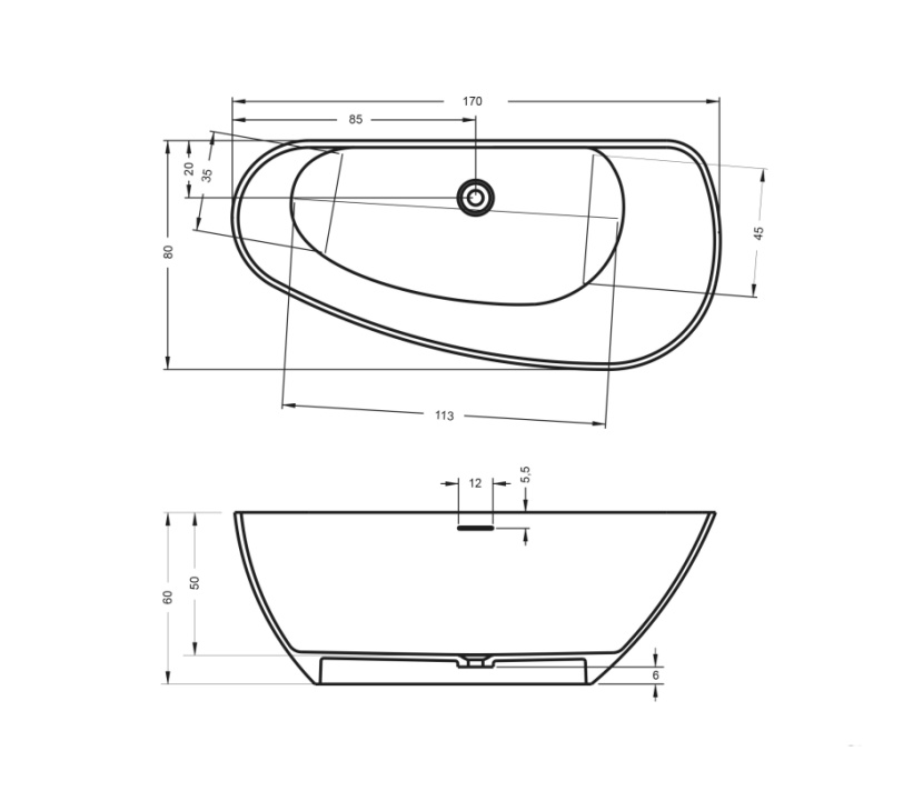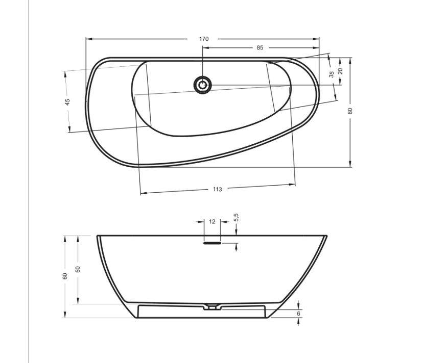 Vrijstaand solid surface bad • Organische vormgeving • Inwendige overloop en pop-up • Verkrijgbaar in 170x80 en 190x90 cm • 170 cm model ook in links/rechts uitvoering • Afwerking buitenzijde in alle Sikkens-kleuren • Hoogglans of zijdeglans lak mogelijk • Inclusief sifon en onderhoudset