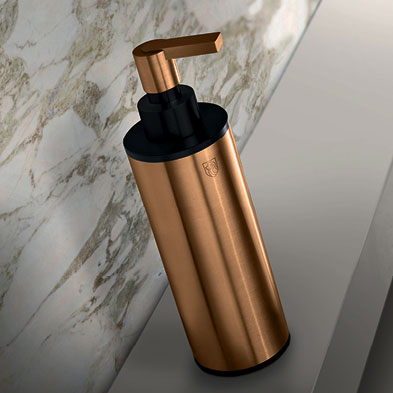 Round accessoires zeepdispenser Radomonte, artikelcode ACX21, ACX22 verkrijgbaar in verschillende kleuren bij Stone Company.