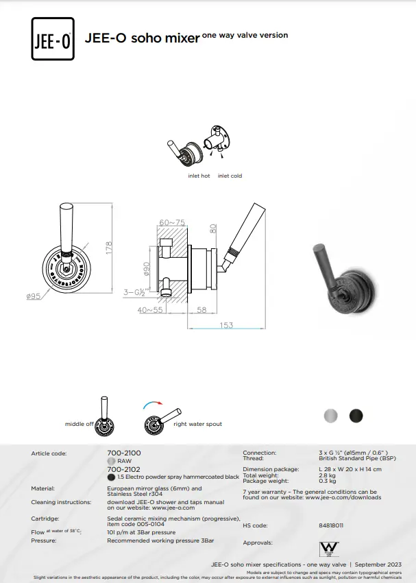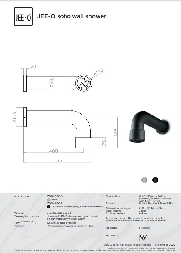 De soho douche combinatie 01 JEE-O is verkrijgbaar in de kleuren: Geborsteld RVS en Hammercoat zwart mat.