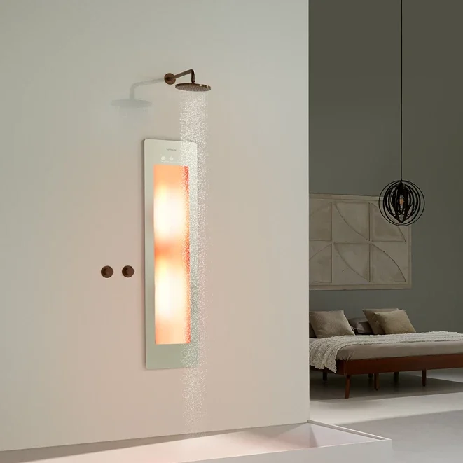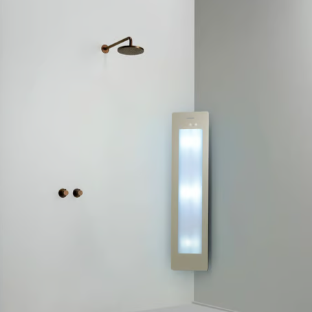 UV-licht combineert en ontworpen is voor inbouw in de douche. Dit model is ideaal voor mensen die willen genieten van de gezondheidsvoordelen van zonlicht en warmte, geïntegreerd in hun dagelijkse doucheritueel.