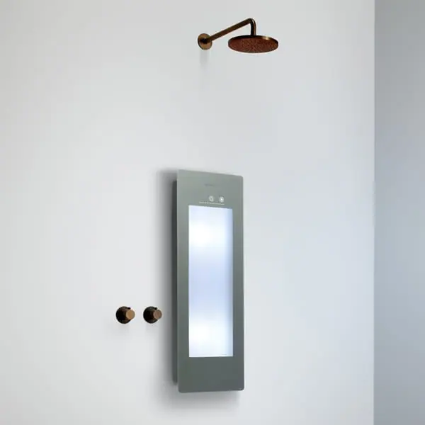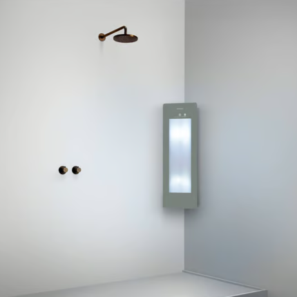 Sunshower Plus Small UV-licht en infrarood inbouw in de afwerkingen Black, Organic Grey, Sand White en White verkrijgbaar bij Stone Company.