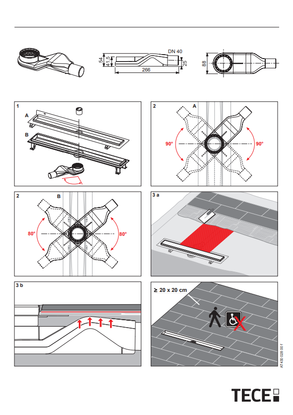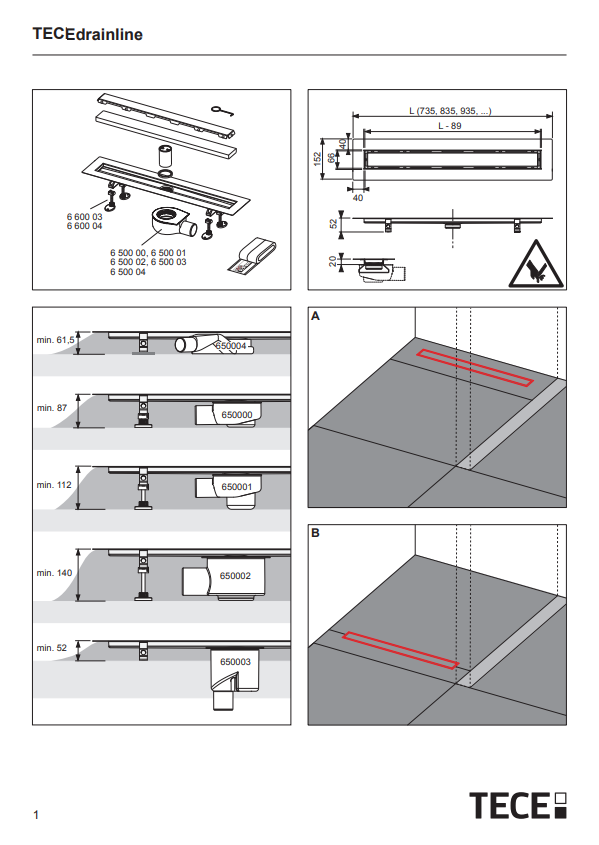 • TECEdrainline afvoer: 650004 (superlaag, DN40, horizontale afvoer)