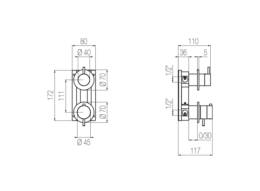 Toki douchemengkraan TER52 Radomonte, artikelcode TER52 inclusief inbouwdeel artikelcode INN2 (verticaal) of INN14 (horizontaal). Thermostatische mengkraan met 2-weg omstel. Nu verkrijgbaar in verschillende kleuren bij Stone Company.
