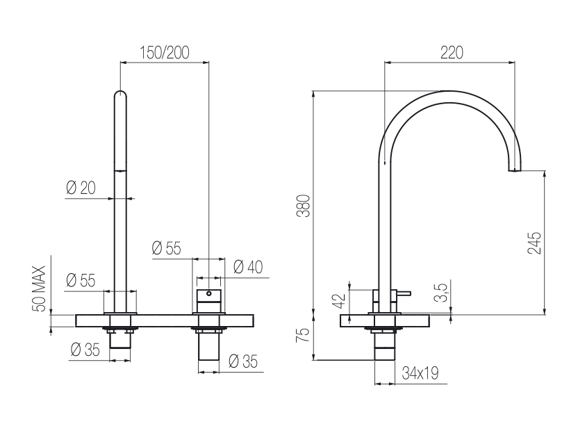 Toki wastafelmengkraan TKI34 Radomonte, artikelcode TKI34. 2-gats hoge mengkraan zonder waste. Nu verkrijgbaar in verschillende kleuren bij Stone Company.