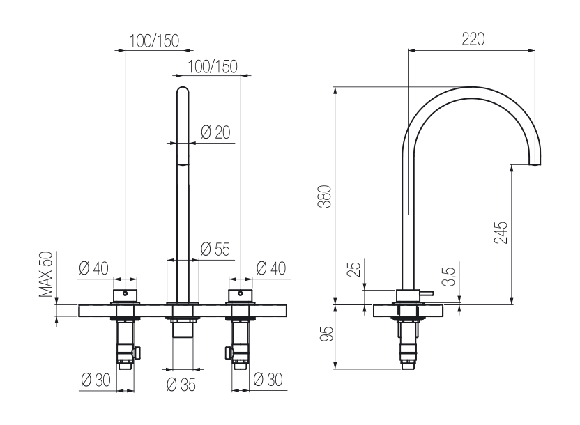 Toki wastafelmengkraan TKN24 Radomonte, artikelcode TKN24. 3-gats hoge mengkraan zonder waste. Nu verkrijgbaar in verschillende kleuren bij Stone Company.