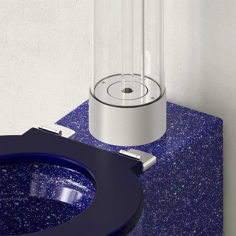 Het Trone Icone Blauw Vlok staandtoilet is geen standaard toilet, maar een opvallend ontwerp waarin techniek en uitstraling samenkomen. Met zijn transparante waterreservoir en gekleurde keramiek vormt Icone een visuele blikvanger in de badkamer of toiletruimte. De afwerking Blauw Vlok combineert een frisse blauwe tint met subtiele vlokjes, wat zorgt voor een rustige maar uitgesproken uitstraling. Dit staandtoilet is ontworpen en geproduceerd in Frankrijk en Italië en combineert design met praktisch dagelijks gebruik.