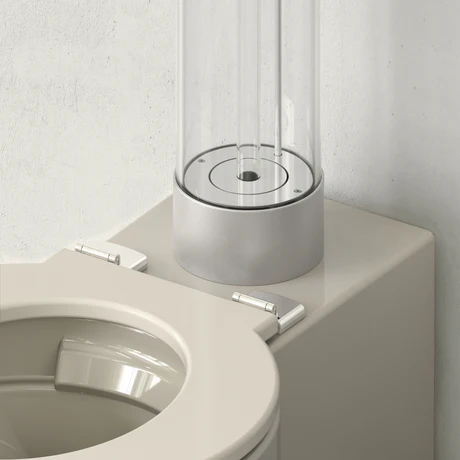 Creme geeft het toilet een zachte, warme uitstraling die rust brengt in het interieur. Deze kleur laat zich eenvoudig combineren met natuursteen, lichte tegels, hout en neutrale tinten. Het toilet is ontworpen en geproduceerd in Frankrijk en Italië en combineert vormgeving met praktisch dagelijks gebruik.