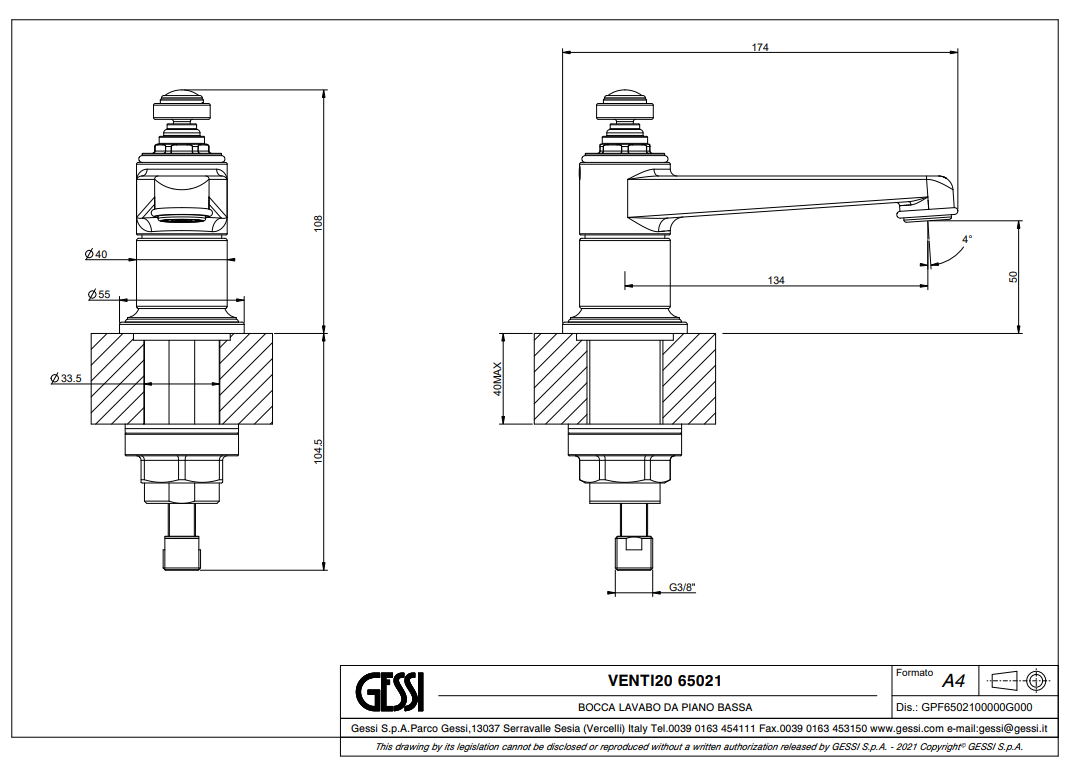 Venti20 lage wastafel uitloop GESSI, artikelcode