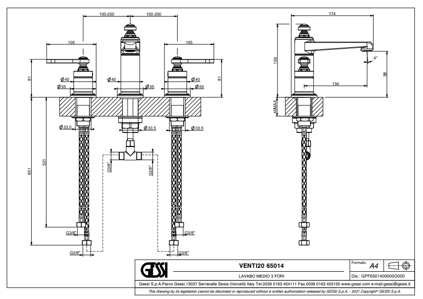 Venti20 medium 3-gats wastafelmengkraan GESSI artikelcode 65014, verkrijgbaar bij