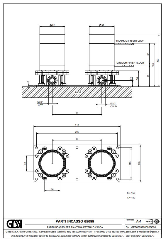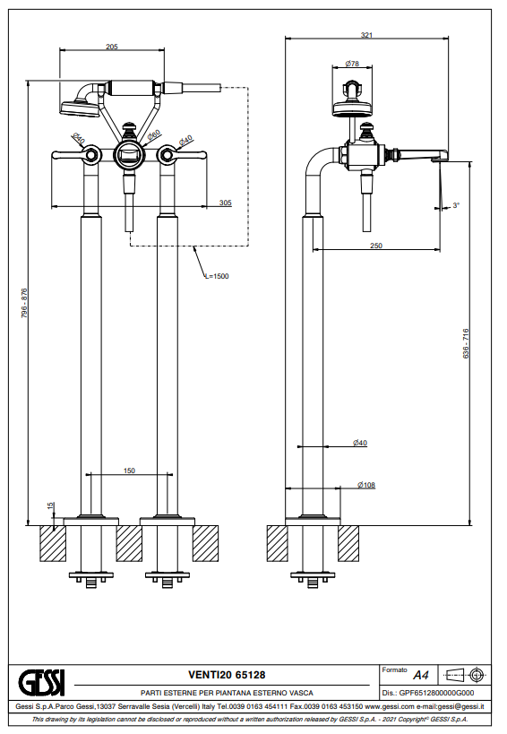 Venti20 vrijstaande badkraan GESSI artikelcode 65099+65128, inclusief inbouwdeel verkrijgbaar bij