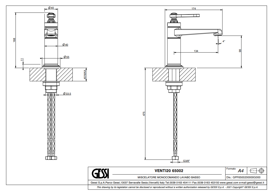 GESSI produceert haar producten op bestelling. Dit betekent dat elk product maatwerk is en niet geruild of geretourneerd kan worden. Controleer daarom zorgvuldig alle specificaties, afmetingen en gekozen afwerking voordat u bestelt.